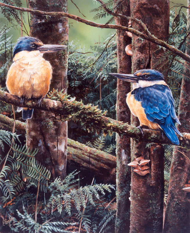 Sacred Kingfishers – Limited Edition of 99 by Elizabeth Cogley – 47 x 38.5cm on Cotton Rag Paper OR 22 x 18 inch on Canvas.